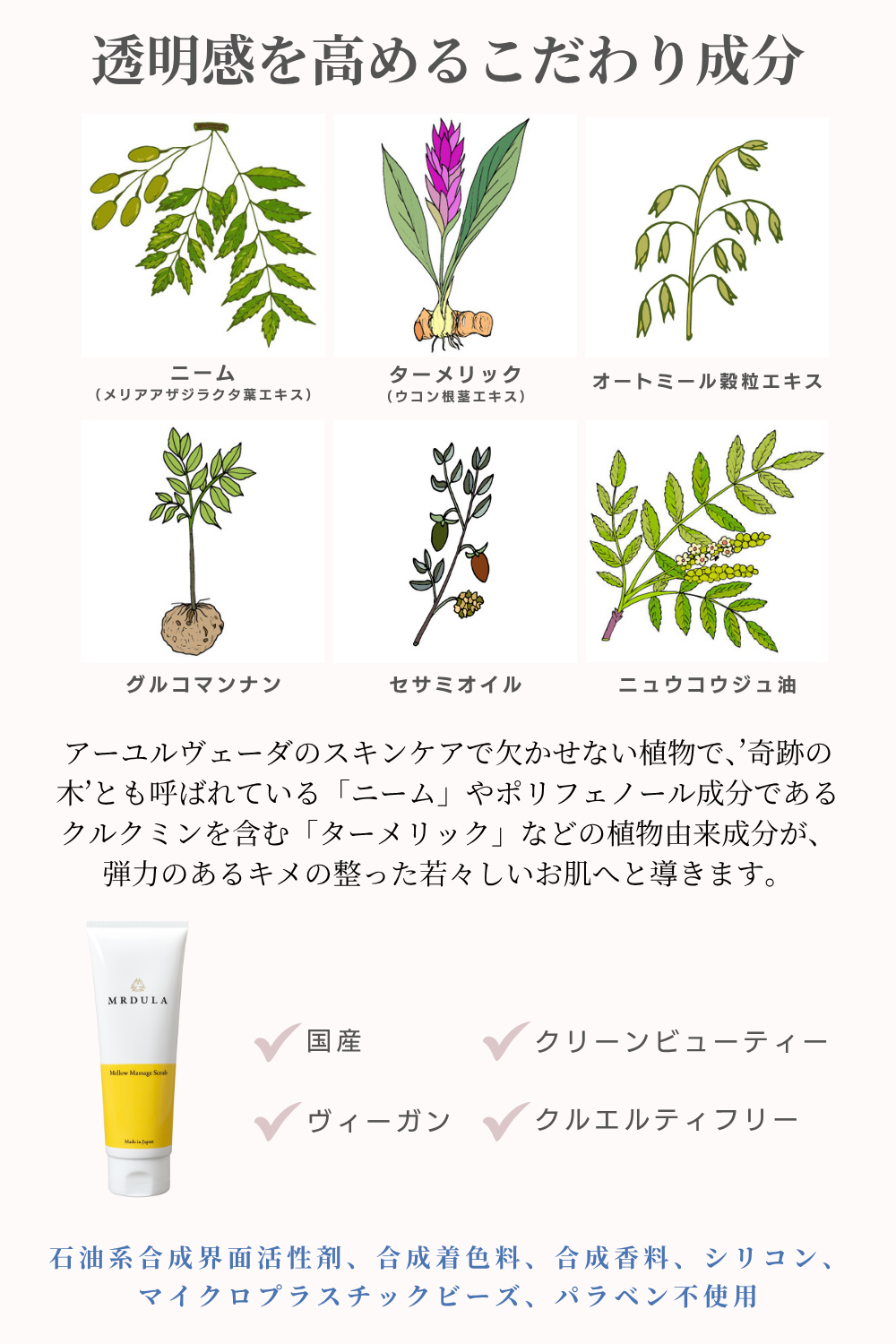 (石油系合成界面活性剤、合成着色料、合成香料、シリコン、マイクロプラスチックビーズ、パラベン不使用)